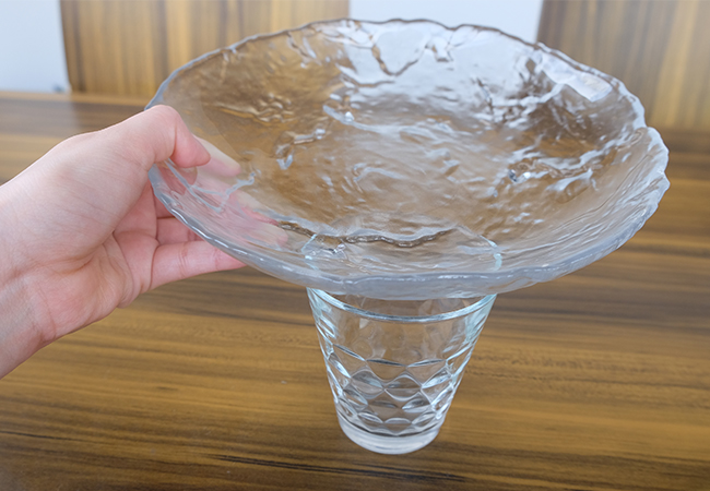 「ガラス皿とグラスを交互に乗せると簡単に作れる!」