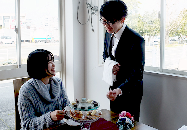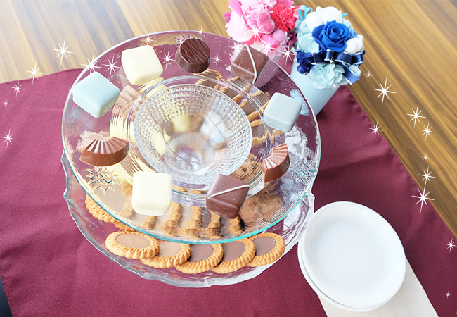 お菓子の横のプリザーブドフラワーが、より優雅さを演出しています。