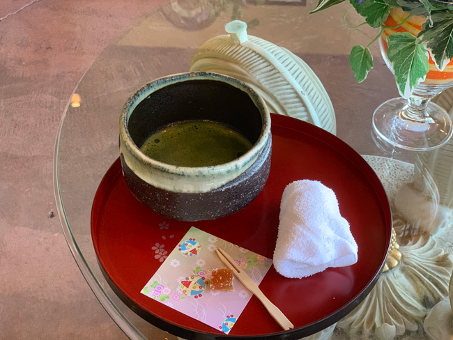 旅館の中はきれいで雰囲気も素晴らしく、チェックインには抹茶と和菓子のサービスも♪