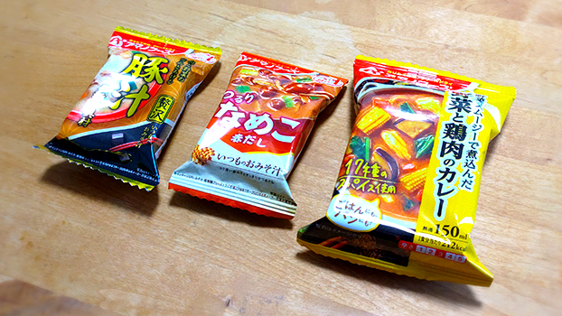 私は「赤だしなめこ汁」が大好きで、見かけたら数個まとめて買って自宅にストックしています。