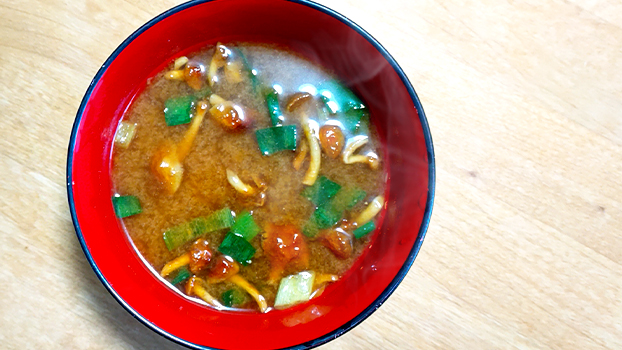 お味噌の風味もよく、なめこのつるっとした食感ものこっていて、さっきまでカサカサしていたのが噓のよう!