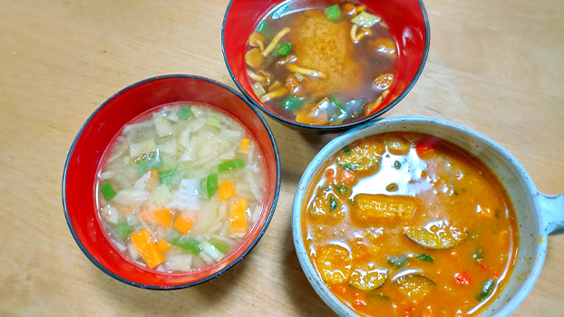 茄子の味噌汁や、あさりのお味噌汁など、沢山の種類があって、どれもインスタントの域を越えた美味しさ。