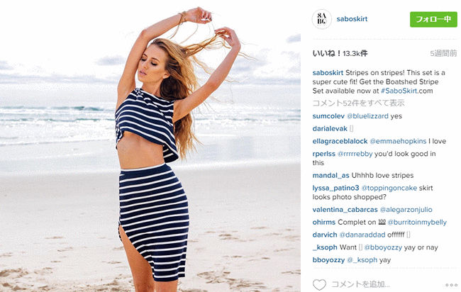 こちらも前述のSabo Skirt同様、自社メディアが強く、それがInstagramでも運用されてるように思います。