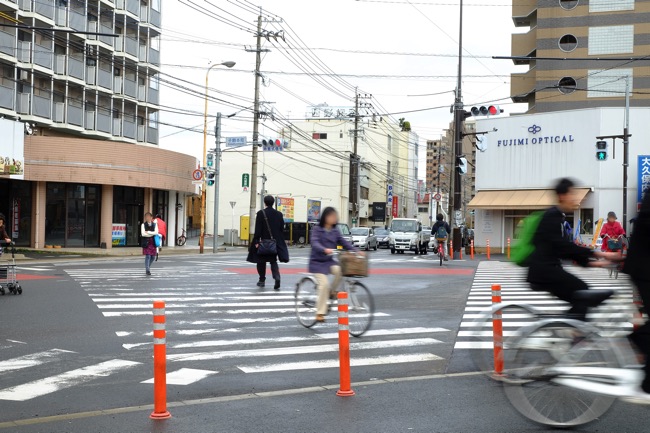 さて、スクランブル交差点だけだとここでネタが尽きてしまうので、ここからはこのスクランブル交差点から直通の「子飼商店街」というマーケットをご紹介したいと思います。