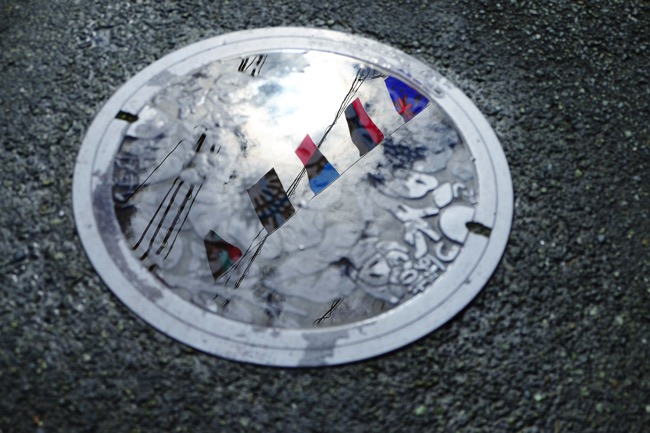 降り続いていた雨もやみ、商店街を盛り上げる国旗たちも輝いていました。