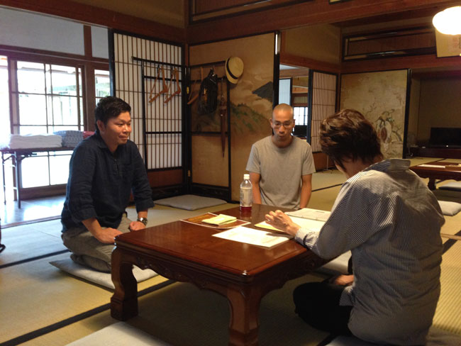 お部屋で今後のスケジュールをお坊さんと打ち合わせ