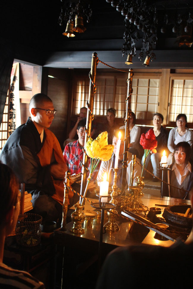 朝は6時に起床してまずは住職さんのお祈りに参加して説法を聞いてから