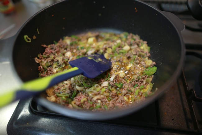 アレンジその1 ネギとひき肉炒めうまかっちゃん