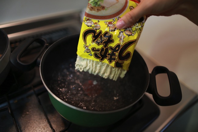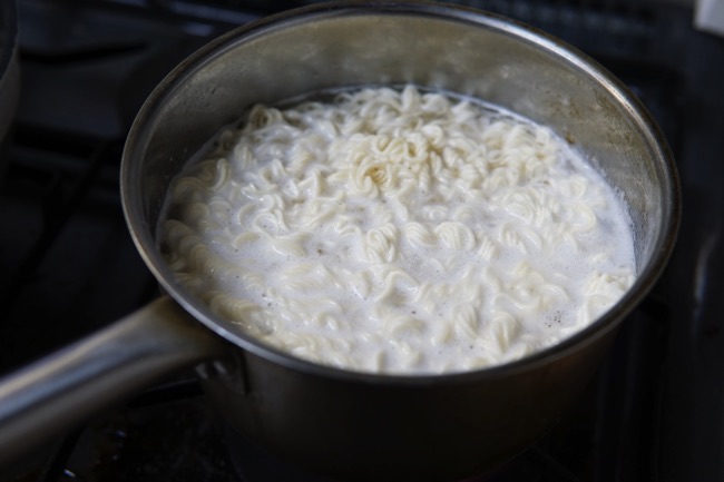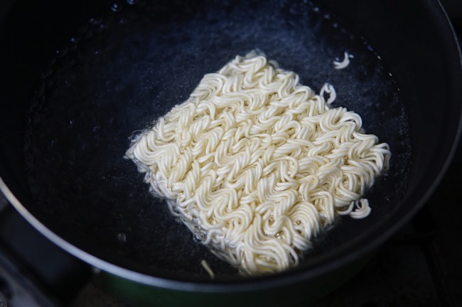 別の鍋でうまかっちゃんの麺を湯がきます。