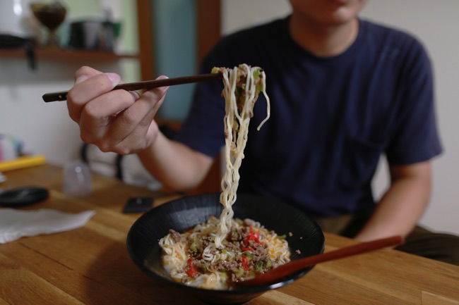豆板醤が効いてて美味いです。いつものうまかっちゃんが簡単にボリュームアップできていいですね。