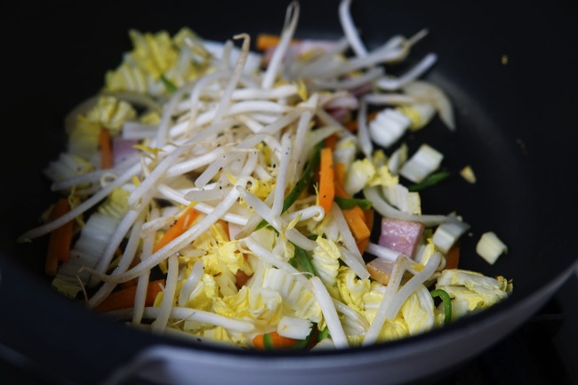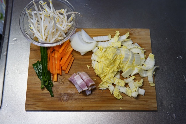 この日は白菜・もやし・人参・ピーマン・玉ねぎを使いました。