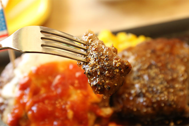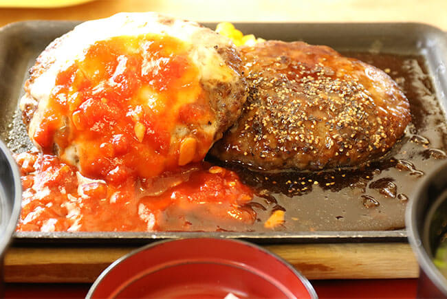 熱々の鉄板に載せられて運ばれてくるハンバーグは、