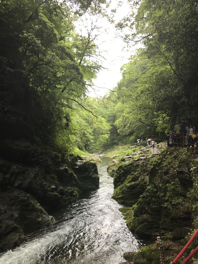 阿蘇山噴火でできたと言われている渓谷の険しい道を進んで行きます!