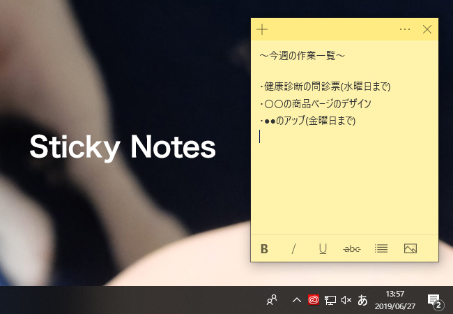 PCのデスクトップに付箋が貼り付けられるアプリ「Sticky Notes」