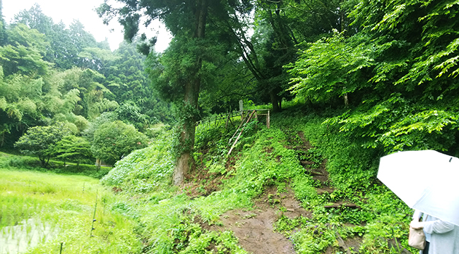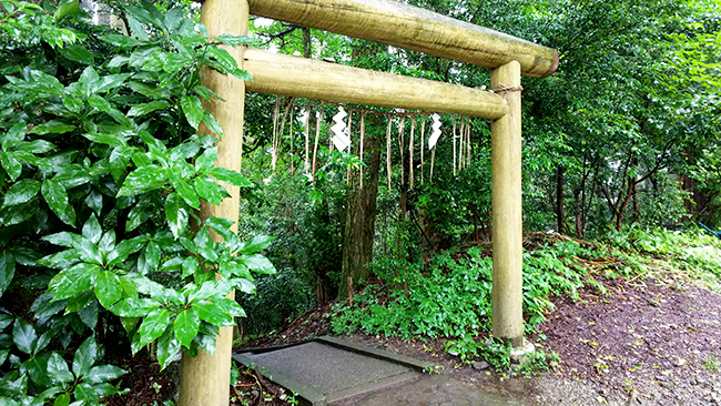山道を只管まっすぐ突き進むと、山林に大きな鳥居が!
