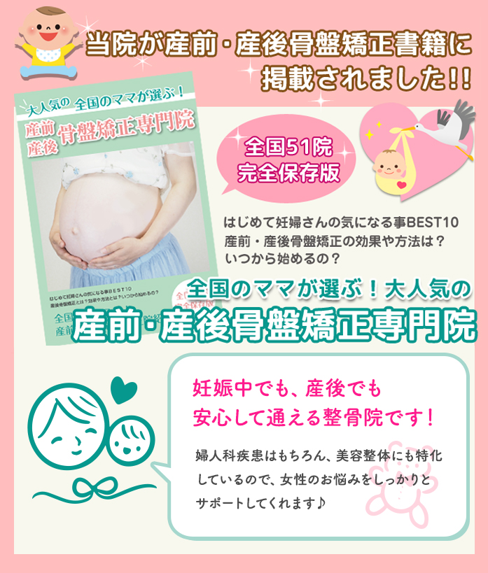 産前に骨盤を調整するとお産自体もスムーズにでき、出産後の回復も早くなります!