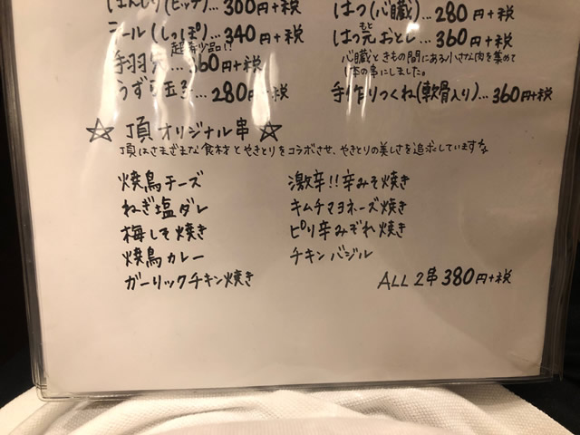 焼き鳥屋様なので、通常の焼き鳥は普通にメニューとしてあります。