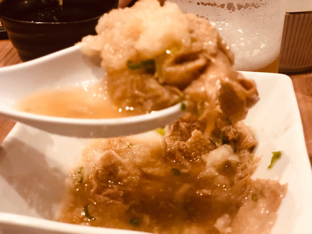 あたたかいとり皮と大根おろしやらなんやらが組み合わさって最高です。