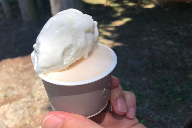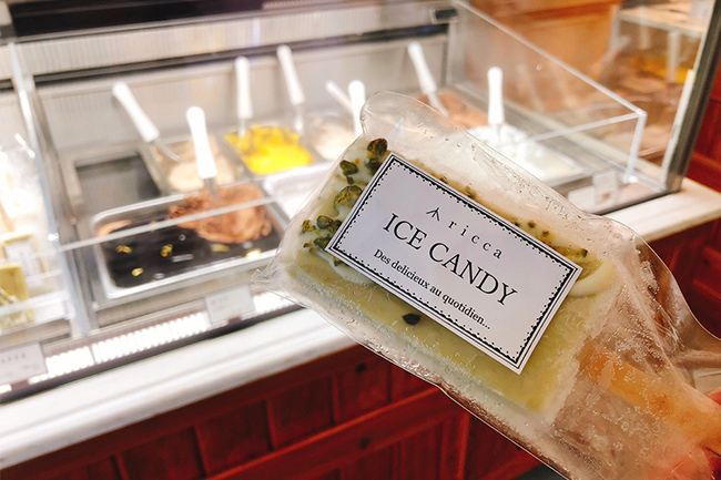 バニラと桃のジェラートとピスタチオのアイスキャンディをオーダー。