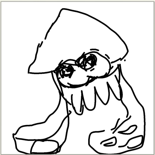 スプラトゥーンのイカを描いたつもりですが正直自分でも怖いです。