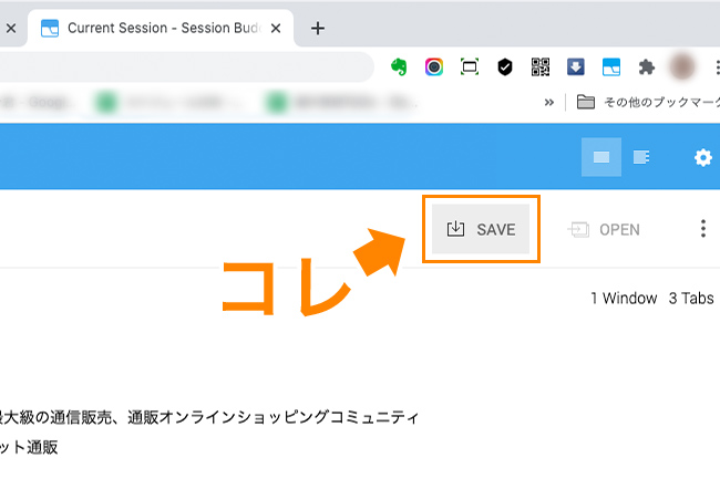 ・ ここのSAVEで開いてるタブをまとめて保存できます!