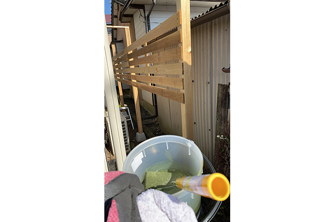材木がまだまだ水を吸ってたので、後日乾燥したあたりで防腐剤を塗布