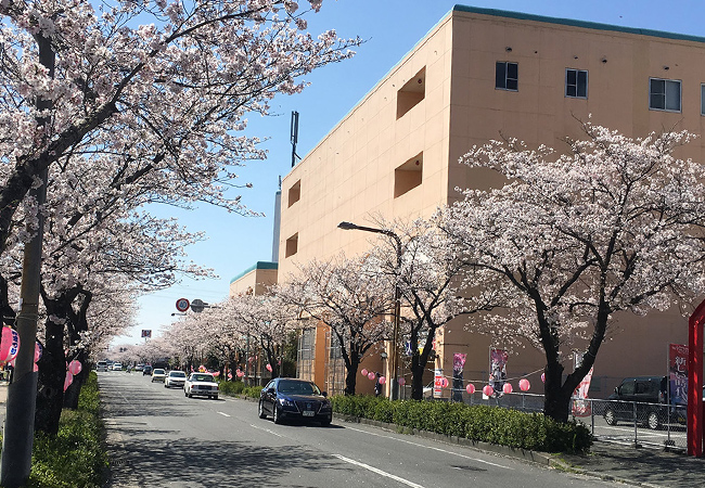 ご覧の通り、桜の並木がとてもきれいで、お買い物がてらに桜を満喫することができます。