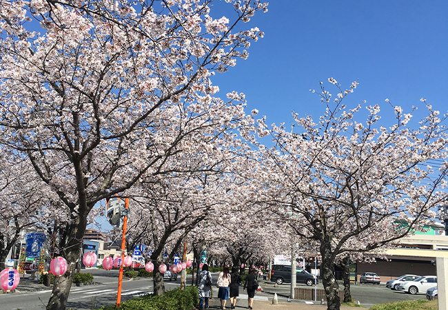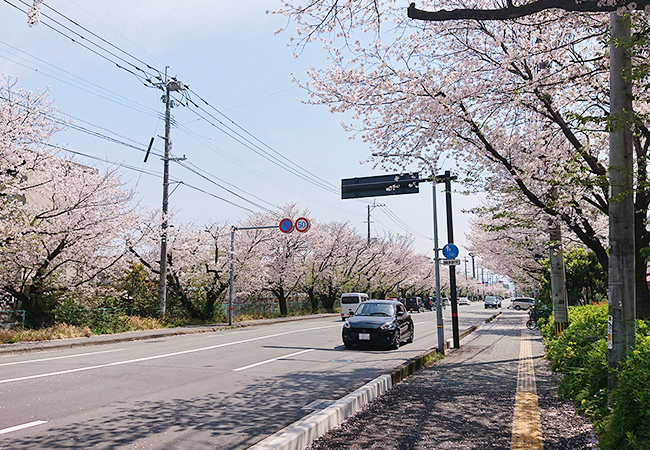 こちらの桜スポットは、熊本市電の健軍終点から北へ伸びる、約1.5kmの桜並木が美しい通りです。