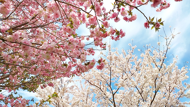 桜の種類も豊富で、いつもはそれぞれ時期が少しずれて咲くのですが、今年はあまりの気温に一斉開花!