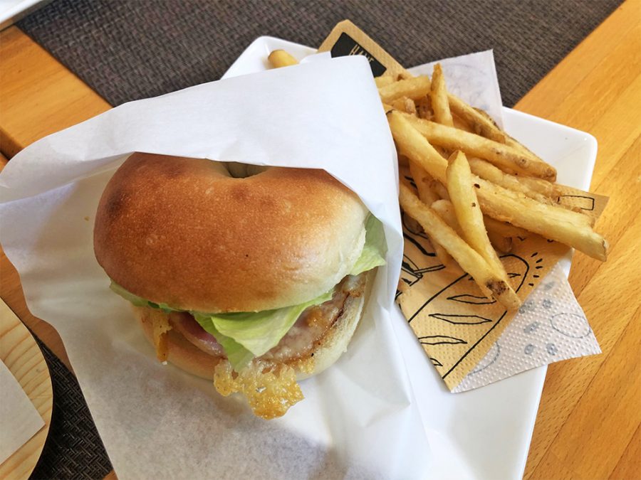 あその赤牛を使ったジューシーなパテが入ったベーグルサンドセットや、チーズがたっぷりのベーグルサンドなどメニューも豊富です。