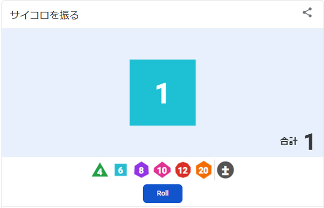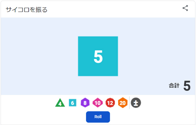 ※「サイコロを振る」と検索すると出てきます。