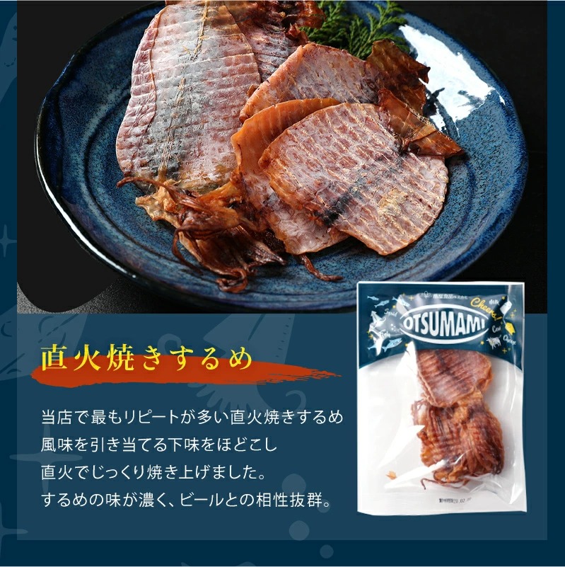 特に私が好きなのは、手で切れて食べやすい、直火焼きするめと・・・