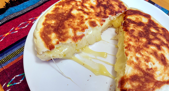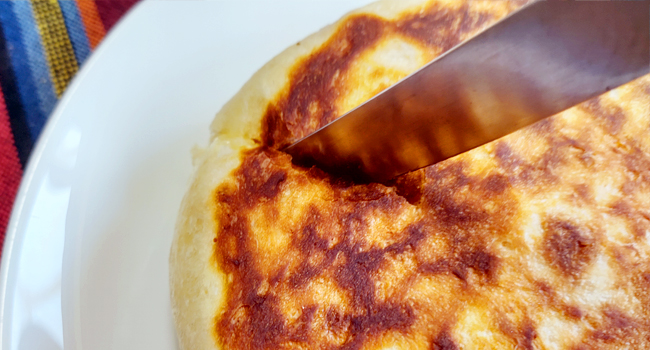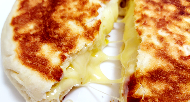 問題のパンの部分もフライパンで焼いているので、焼き目はザクっとしていて、中の方はつまってる感じのもちっと食感で美味しい。