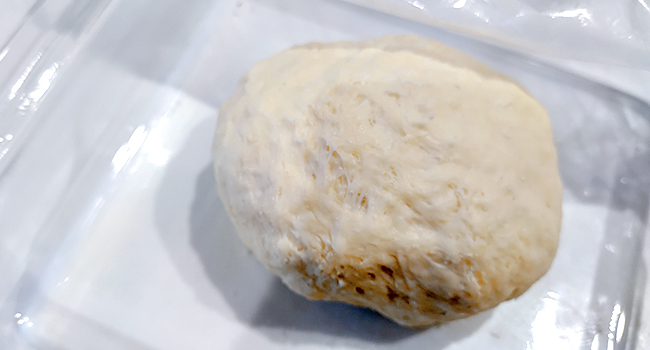 ④レンジから取り出して、耐熱容器に入った状態で数回こねるて、まとめなおして再度ラップをふんわりかけて、もう一度200ワットで30秒チン。