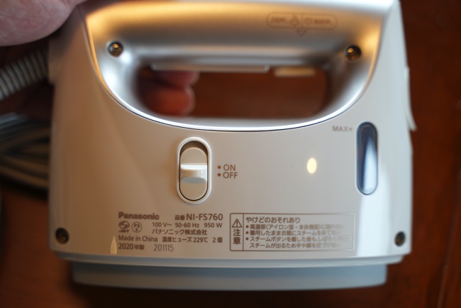 本体のスイッチ類はいたってシンポー。オンオフと、スチームを出すときのトリガーがあるのみだ。
