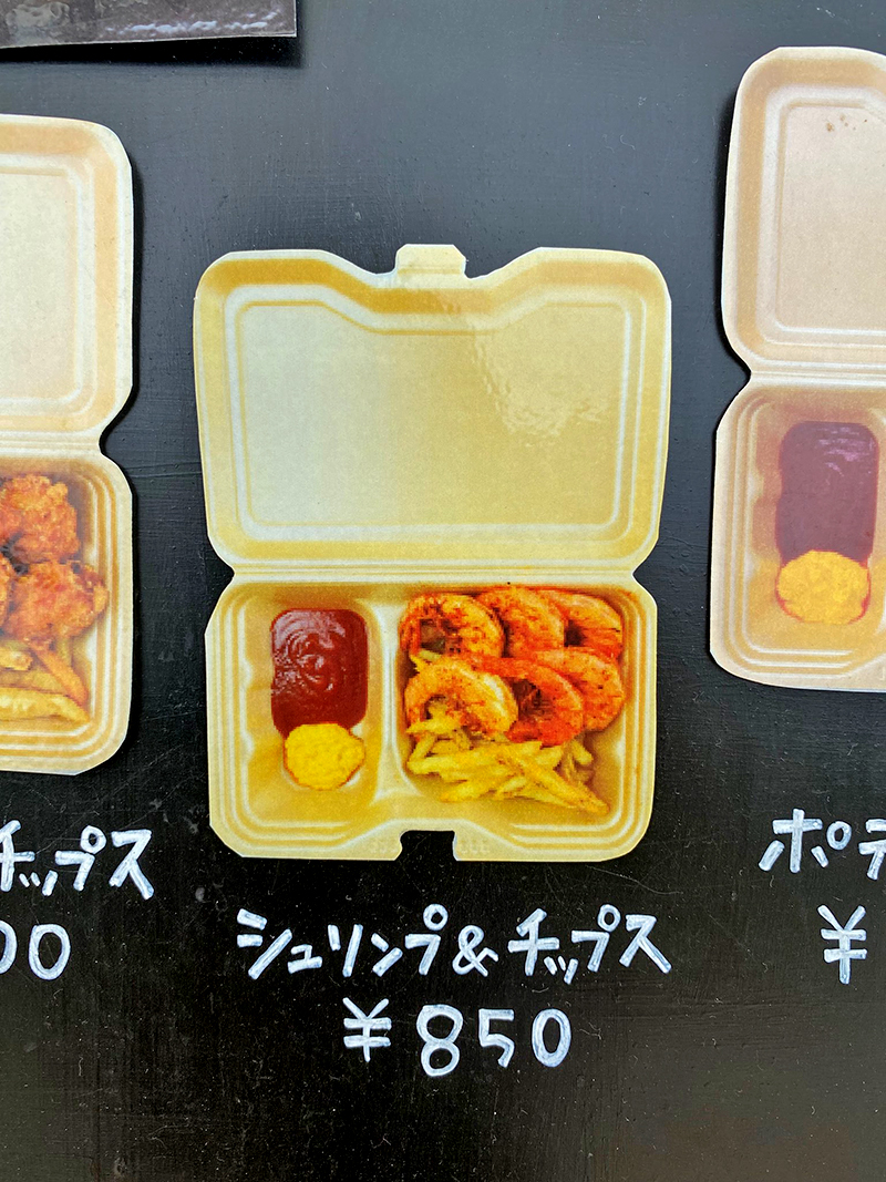 シュリンプ&チップスを注文している間、みかんのストレートジュースを飲んで喉を潤しました。