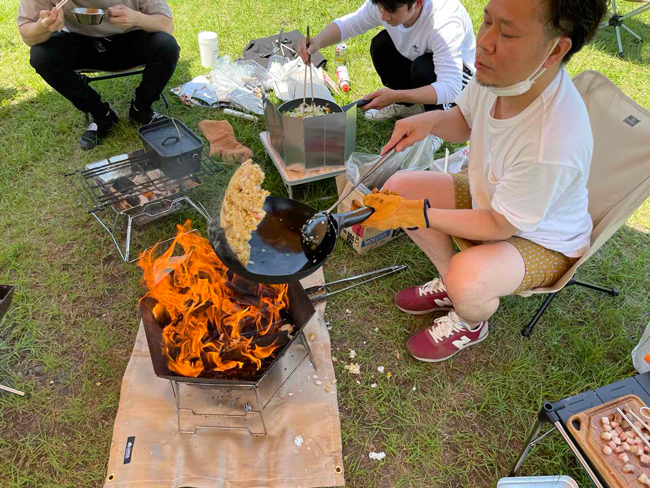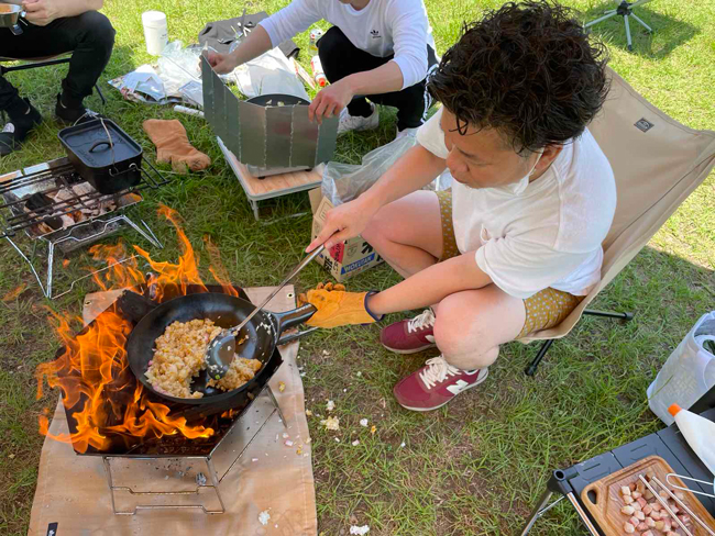 キャンプの醍醐味はやはり強力な火力で作る炒飯です♪