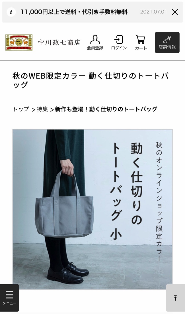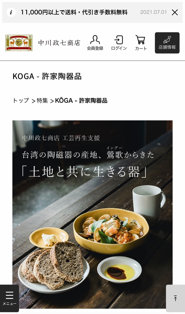 今月は「中川政七商店」のECサイトをスマホで見ていきたいと思います。
