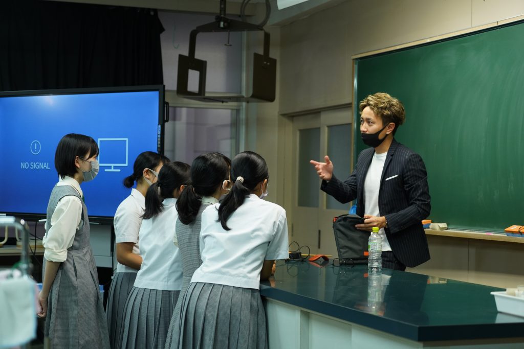 講座終了後、彼はあっという間に女子高生に囲まれました(笑)