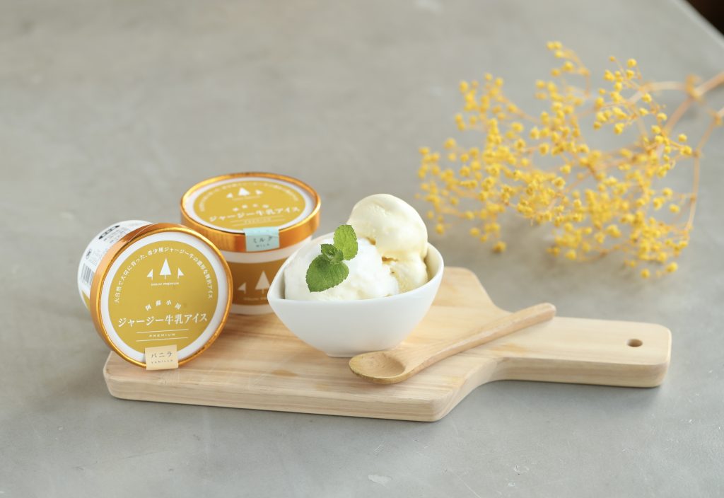 阿蘇のジャージー牛の生乳を使ったアイスクリーム。。