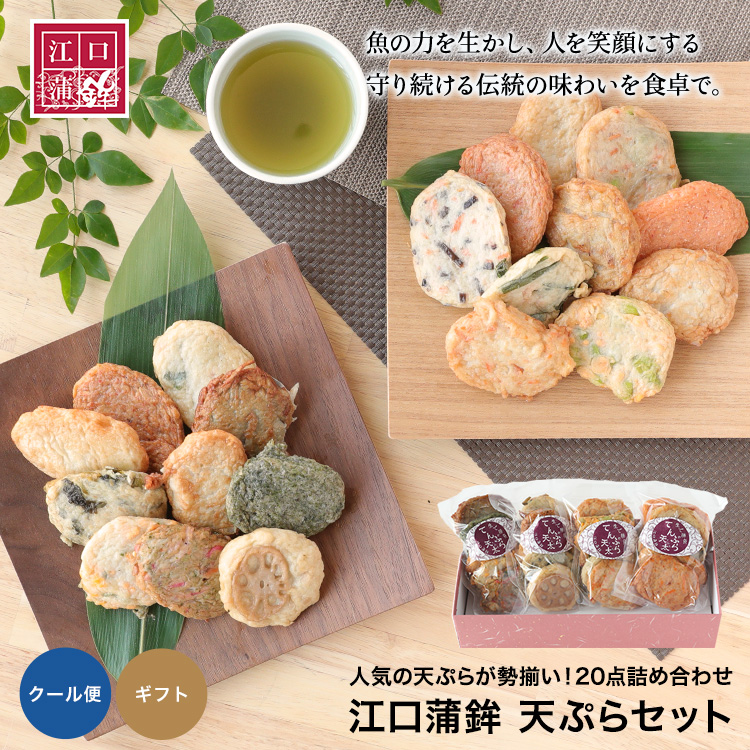今月は、素材にこだわる江口蒲鉾さんの[人気の天ぷら 20種詰め合わせセット]をご紹介。