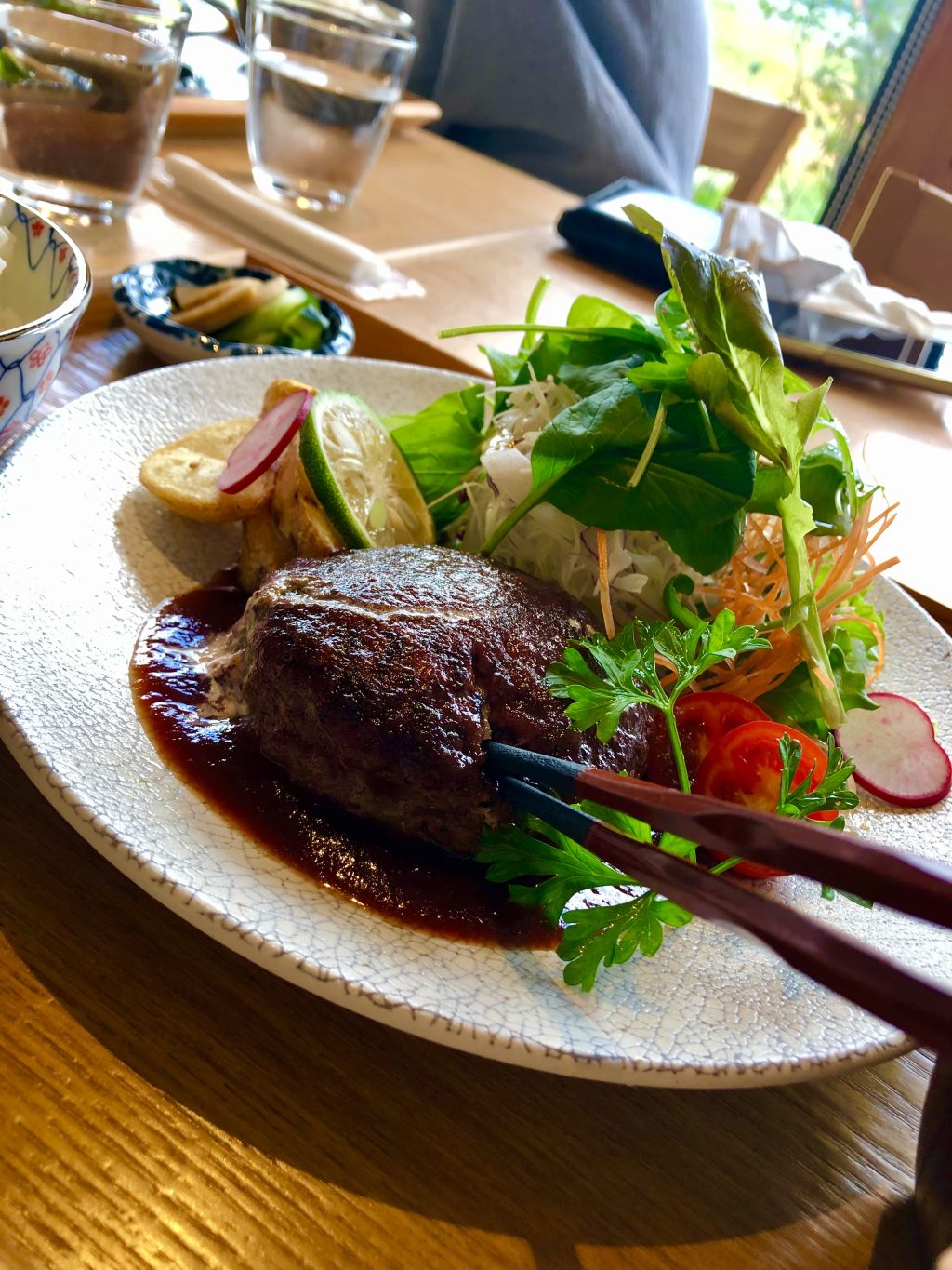 3人仲良く、肥後牛 100%ハンバーグランチをオーダー。
