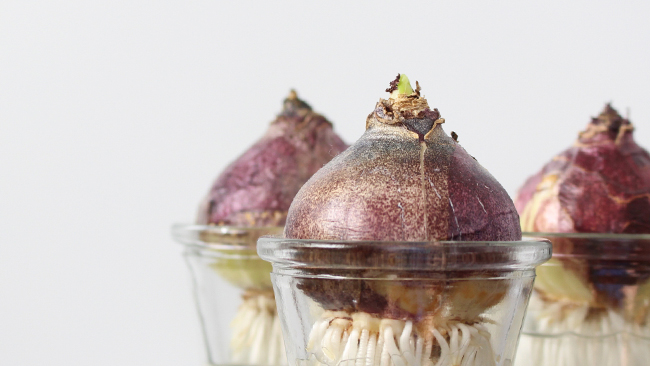 ころっとした球根のフォルムや、そこからにょきっと生える新芽や、フサフサに増える根も、他にない個性的な見た目がすごく魅力的。