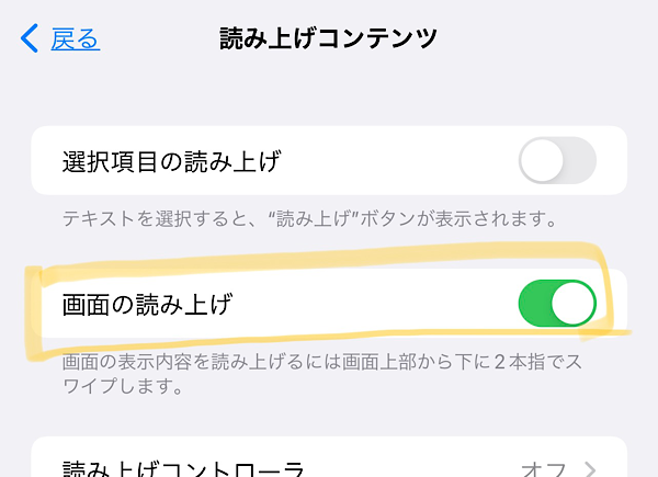 「画面の読み上げをオンにする」