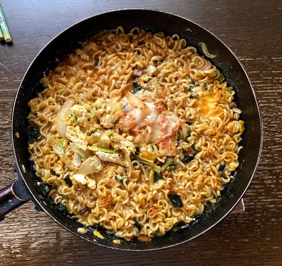 5・フライパンごと食べる(お好みで宗家キムチを添えて)