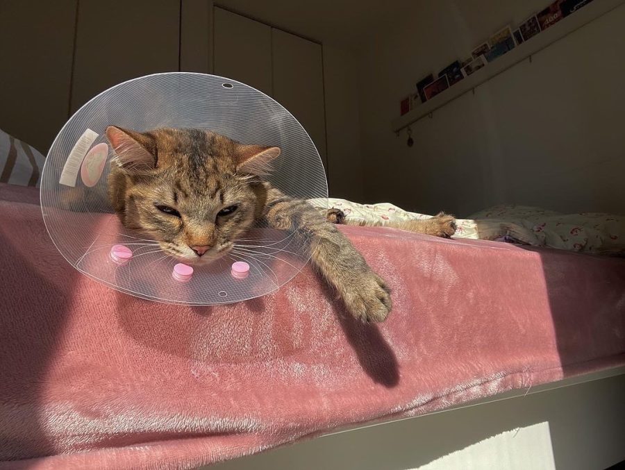手術後、しっかりとエリザベスカーラーを付けて帰ってきたんですが、