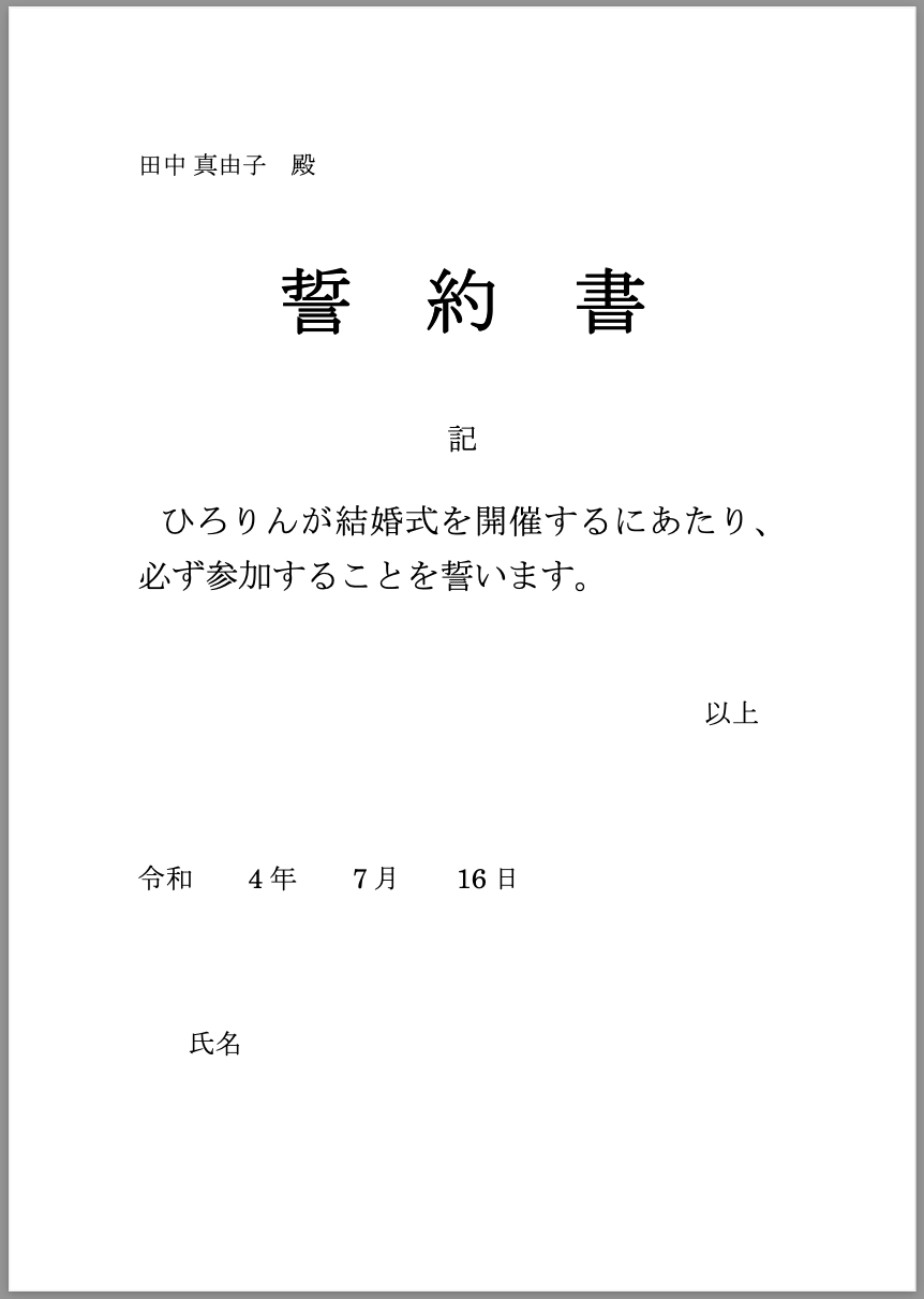 いつか式は挙げるとして【誓約書】の方、発行させていただきますわね。