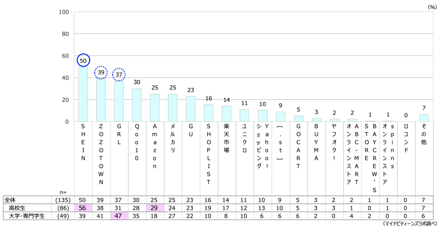 マイナビの調査によると、高校生・大学生が利用するサイトでは「zozo」を抜いて1位に選ばれています。