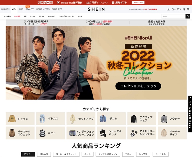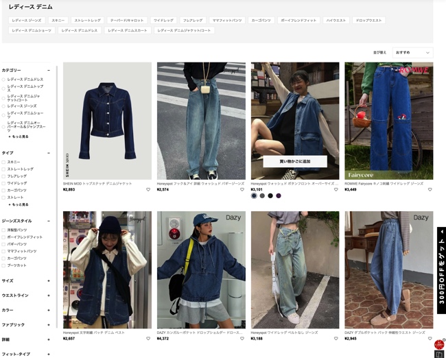 今っぽいアイテムが無数に表示される「SHEIN シーイン」