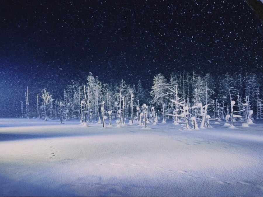昼間は雪で池も見えないので